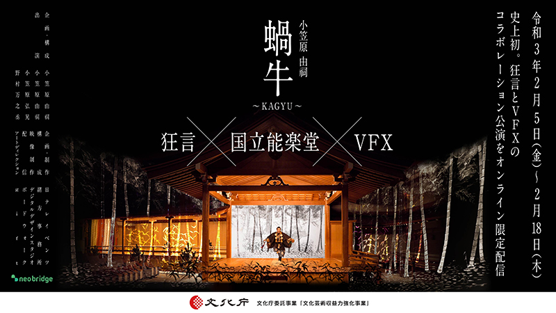 2月5日、オンライン配信だからこそ実現が可能になった新たな伝統芸能エンタテインメント狂言「蝸牛〜KAGYU〜」が電子チケット「ticket board」 にて受付、配信プラットフォーム「neo bridge」にて配信されました。